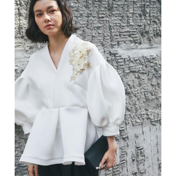 2, 花モチーフ付きVネックバールーン袖トップス|SMILE ORCHID