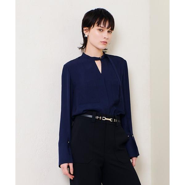 控えめなボウタイデザインが、顔周りをパッと華やかに見せてくれるブラウスです。