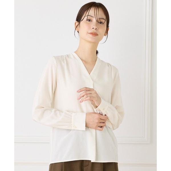 無駄を削ぎ落とした、潔いVネックラインが美しい王道のきれいめブラウス。